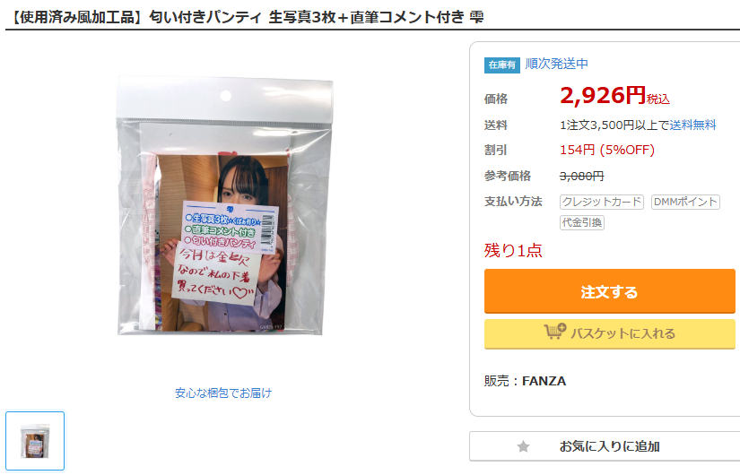 [*このようなシチュエーションを想定した使用済風加工品です。]清純系のオナニー好きOL雫ちゃんの生写真3枚と直筆コメント付きのパンティ
