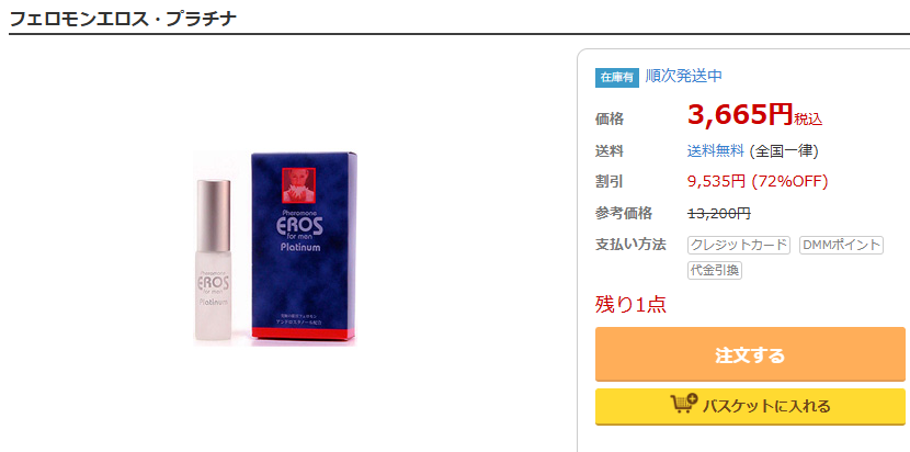 大ヒットベストセラー!フェロモンスプレーNo.1人気商品。本能に呼びかける究極の催淫物質。TV・マスコミで話題の効果で希少な催淫物質「アンドロスタノール」を従来のフェロモンエロスの分泌量を従来のフェロモンエロスより20%も増量したフェロモン香水。女性がこれを嗅ぐと小脳に直接作用し生殖器官に影響、神経内分泌刺激を誘発し欲情、肉欲、本能むきだしの催淫世界へと誘います。公開実験でも85%の高確率で実証!